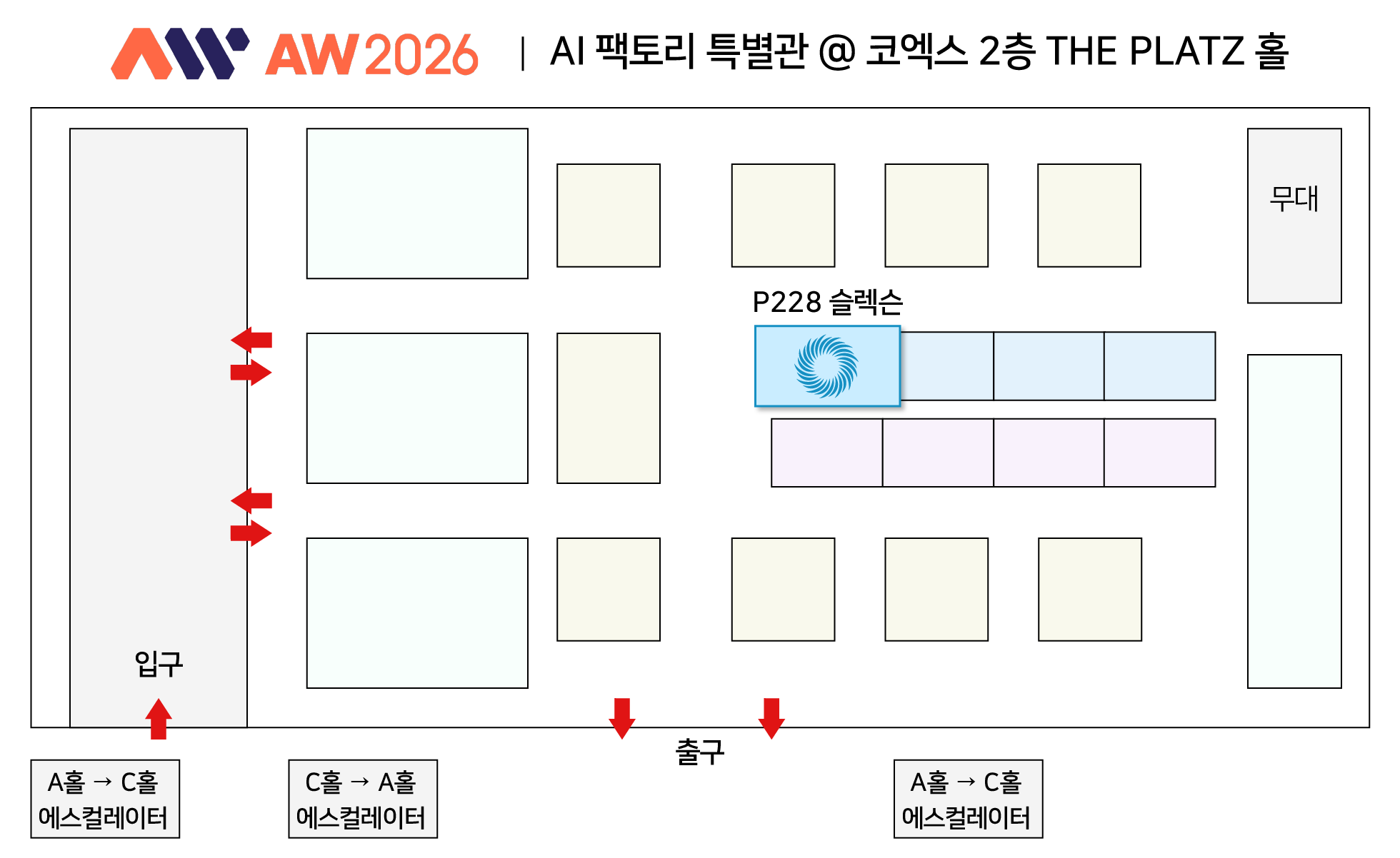 SLEXN 부스는 AW2026 2층 THE PLATZ 전시장 P228 번 부스에서 운영되며, AI 개발을 위한 인프라와 플랫폼 솔루션을 직접 만나보실 수 있습니다.