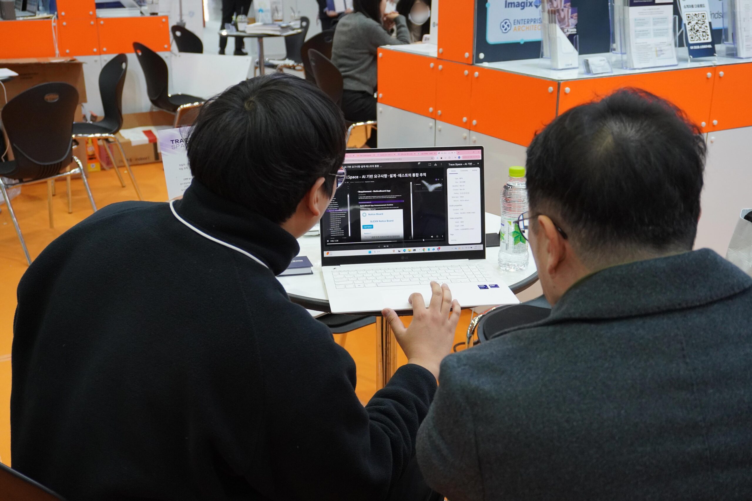 Trace.Space에 대해서는 특히 항공·자동차 산업군의 관심이 두드러졌습니다. 요구사항과 테스트를 구조적으로 연결하고, 변경 이력을 추적하는 방식에 대해 실무적인 질문이 이어졌습니다. 데모 영상 요청, 공공기관 사례 요청, 구축 이후 유지보수 비용을 어떻게 줄일 수 있는지에 대한 논의도 자연스럽게 이어졌습니다.