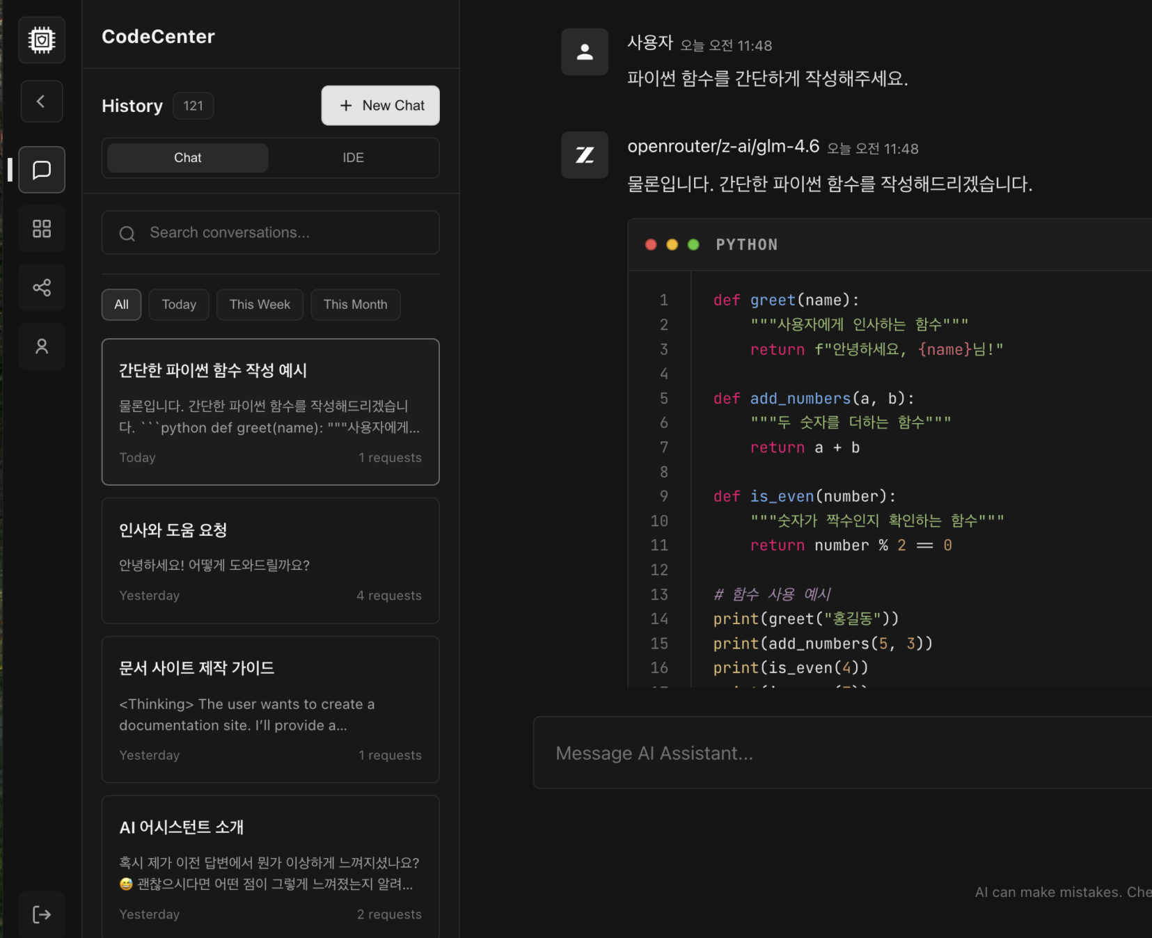 CodeCenter Agent는 단순한 코드 작성 지원을 넘어, 아키텍처 설계부터 성능 최적화, 보안, 유지보수 전략까지 아우르는 풀스택 AI 엔지니어입니다.