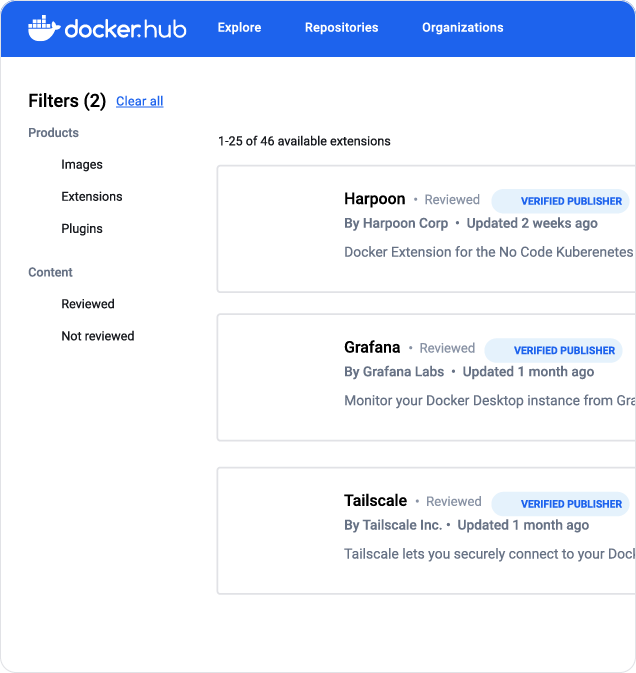 검증된 이미지와 최신 상태로 유지되는 콘텐츠를 통해 안전한 컨테이너 이미지 사용을 지원합니다