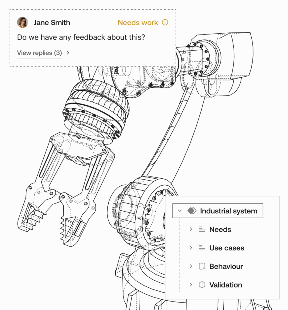 시스템 내에서 직접 검토, 댓글, 승인 작업을 수행합니다. 모든 변경 사항은 근거, 영향, 추적 맥락과 연결되어 하드웨어·소프트웨어·시스템 팀이 일관된 속도로 협업할 수 있습니다.